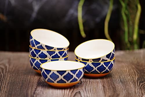 Freakway Hand-Painted Umrao/Moroccan Design Handpainted Bowls Set Ceramic Vegetable Bowl/Dessert Bowl/Soup Bowl (Multicolor, Pack of 6)