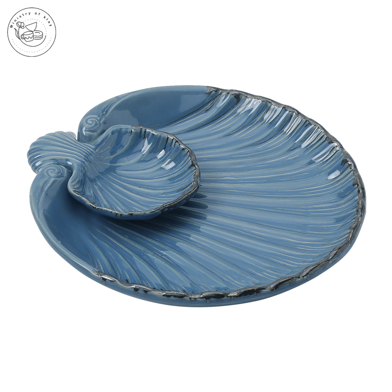 Ministry Of Klay Blue Shell Shaped Ceramic Platter / Microwave Safe.