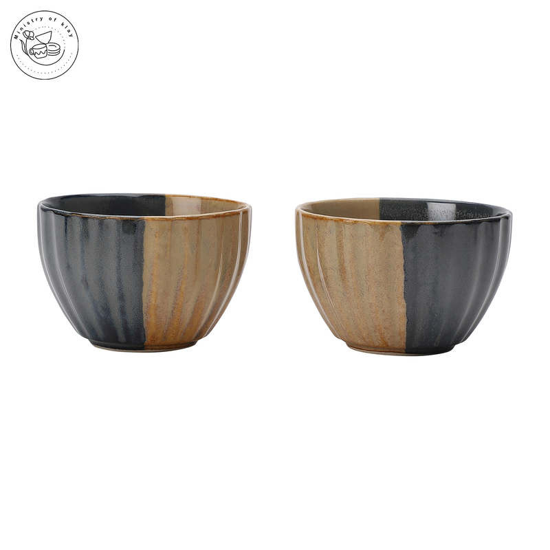 Ministry Of Klay Blue Brown Ceramic Serving Bowl / Microwave Safe, Set of 2, 250ml each