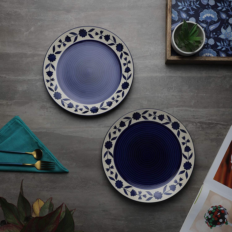 The Decor Lane Floral Blue And White Plates Pair Handpainted Ceramic Dinner Plates (10 Inch, 2 Pieces, Microwave & Dishwasher Safe)