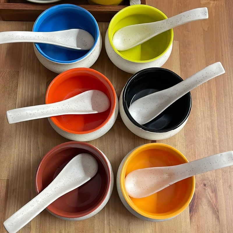 Multicoloured Ceramic Soup Bowl and Spoon Set