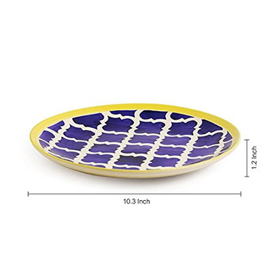 Freakway Moroccan Plates Pair Handpainted Ceramic Dinner Plates Dinnerware Serving Plate Thali Ceramic Plates for Dinner (10 Inch, Set of 6 Pieces, Microwave & Dishwasher Safe)-Premium