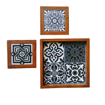 💠 Material: Black & white embossed Ceramic Tiles & Teakwood frame with epoxy grouting